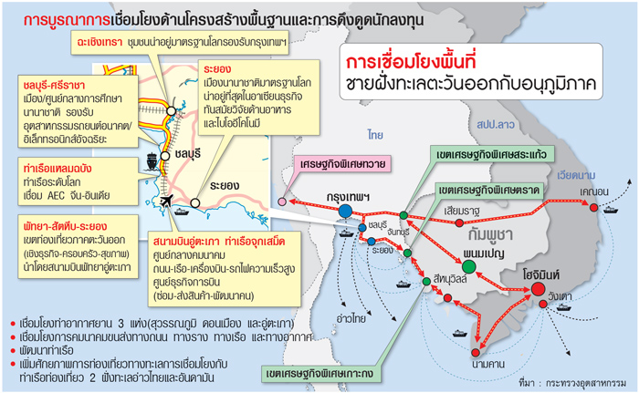แต่หากใครติดตามข่าวสารหรือข้อมูลต่างๆ ขออย่าเพิ่งสับสน เพราะการเขียนหรือการพูดไม่ได้หมายถึงเค้าโครงเศรษฐกิจทั้งหมด ตอนนี้เป็นเพียงกรอบในเค้าโครงเศรษฐกิจที่กำหนดขึ้นใหญ่ จากรอบชายแดนสู่โครงการพัฒนาระเบียงเศรษฐกิจภาคตะวันออก เป็นการต่อยอดจากอิสเทิร์นซีบอร์ดเป็นซุปเปอร์อิสเทิร์นซีบอร์ด ด้วยวงเงินลงทุนรัฐ-เอกชนในระยะ 5 ปี พัฒนาสนามบินอู่ตะเภา 200,000 ล้านบาท ท่าเรือมาบตาพุด 10,150 ล้านบาท ท่าเรือแหลมฉบัง 88,000 ล้านบาท รถไฟความเร็วสูง 158,000 ล้านบาท รถไฟทางคู่ 64,300 ล้านบาท มอเตอร์เวย์ 35,300 ล้านบาท ท่องเที่ยว 20,000 ล้านบาท เมืองใหม่และโรงพยาบาล 400,000 ล้านบาท และอุตสาหกรรม 500,000 ล้านบาท